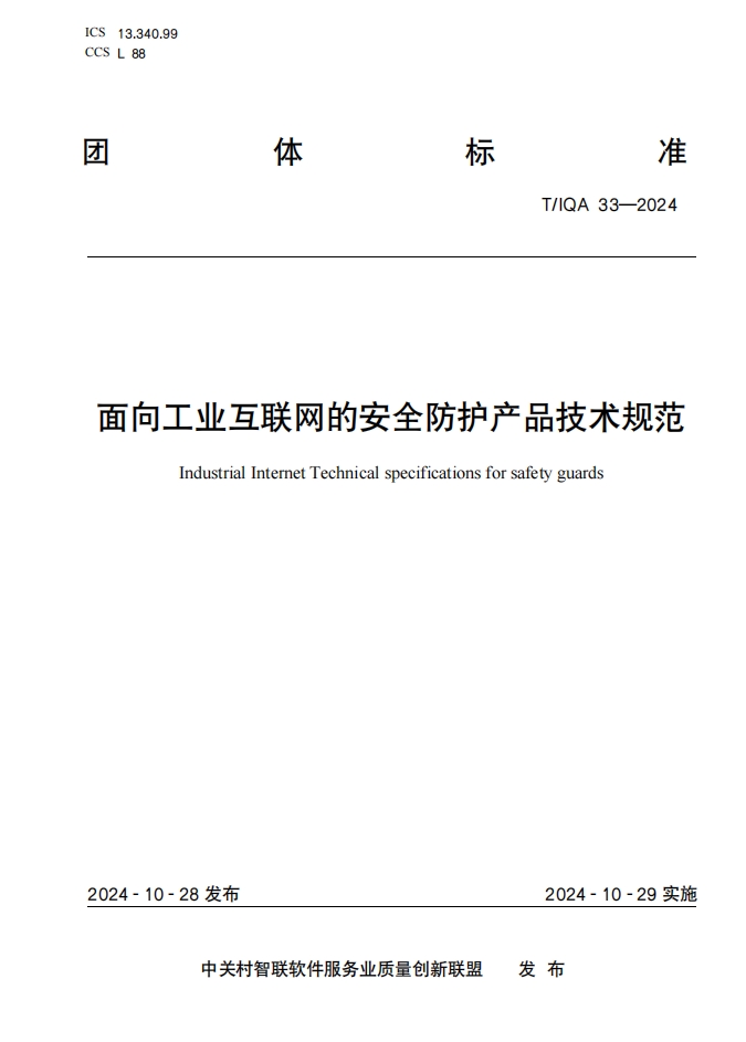 來源:圣博潤日前,由中關村智聯軟件服務業質量創新聯盟標準化管理委員會提出并歸口,圣博潤主編的T/IQA 33-2024《面向工業互聯網的安全防護產品技術規范》團體標準(以下簡稱標準)正式發布!