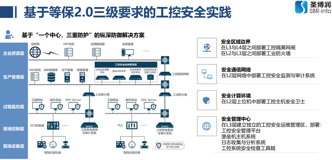 培訓中結合工業互聯網安全風險和系統脆弱性等問題,對多個關鍵基礎設施行業存在的共性問題做了分享。孫成建議:“應建立起有效的安全防護和保障,通過管理和技術有效結合,針對已知風險應加強安全風險實時監管和防護,針對未知安全風險應定期加強安全檢查和評估,共同筑牢工控系統安全底座”。在解決方案部分,就安全框架整體設計進行了分享,孫成表示:“工業互聯網安全的防護體系建設應以‘一個中心、三重防護’的縱深防御體系為主旨,滿足等保2.0的基本要求"。構建安全通信網絡、安全區域邊界、安全計算環境及安全管理中心為一體的縱深防御體系,融合P2DR模型和IATF技術框架模型理念,實現事前預防、事中響應、事后審計的可信、可控、可管的安全防御系統。
