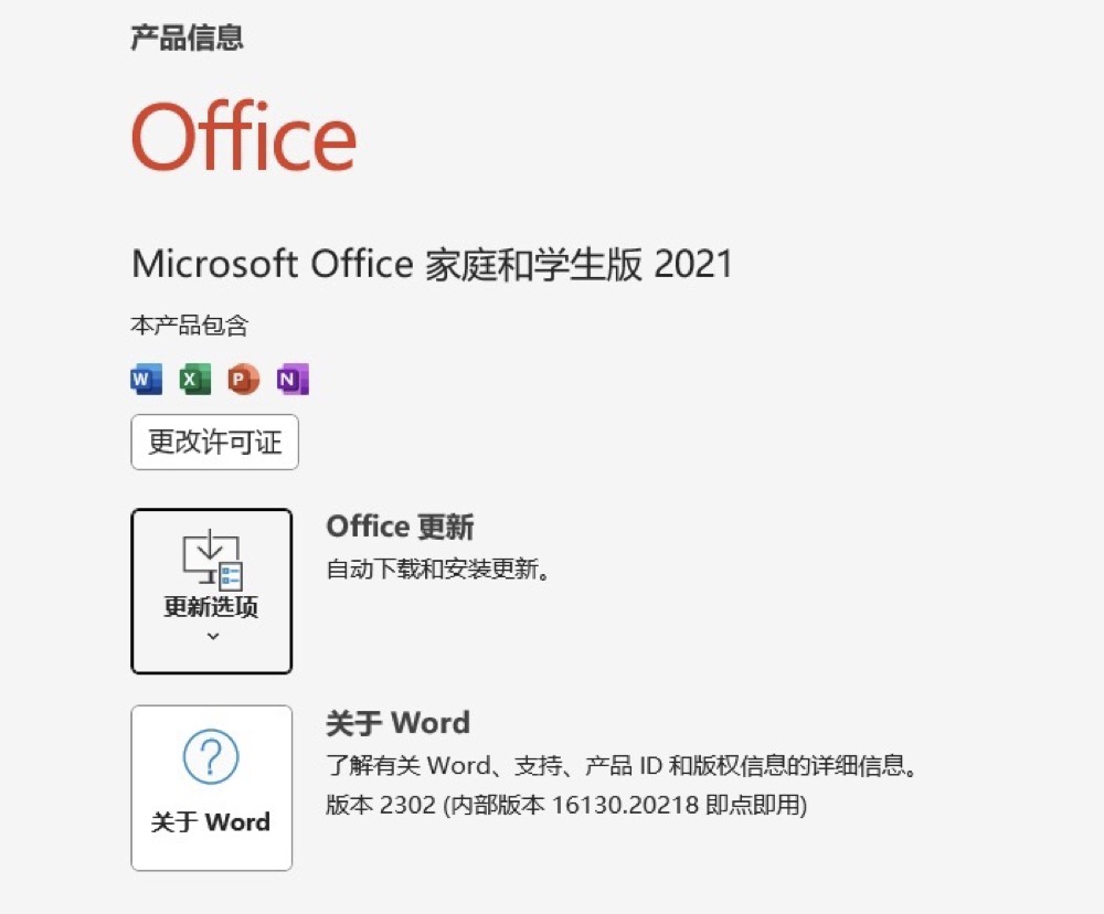 打開Office應用,點擊"文件">"賬戶",在產品信息中點擊"更新選項">"立即更新"